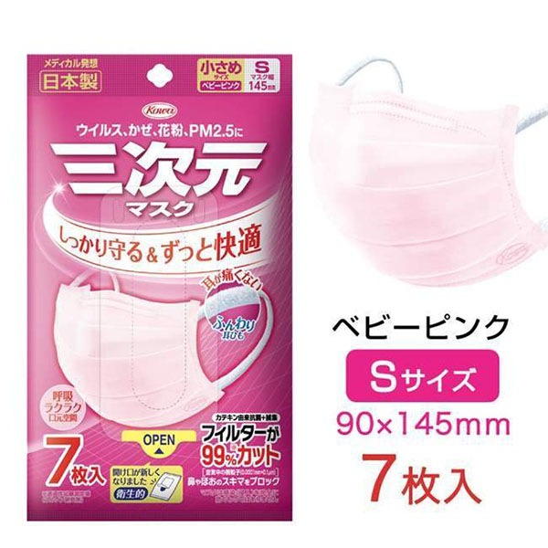 Kowa 3D Mask Small Size S Baby Pink 7pcs