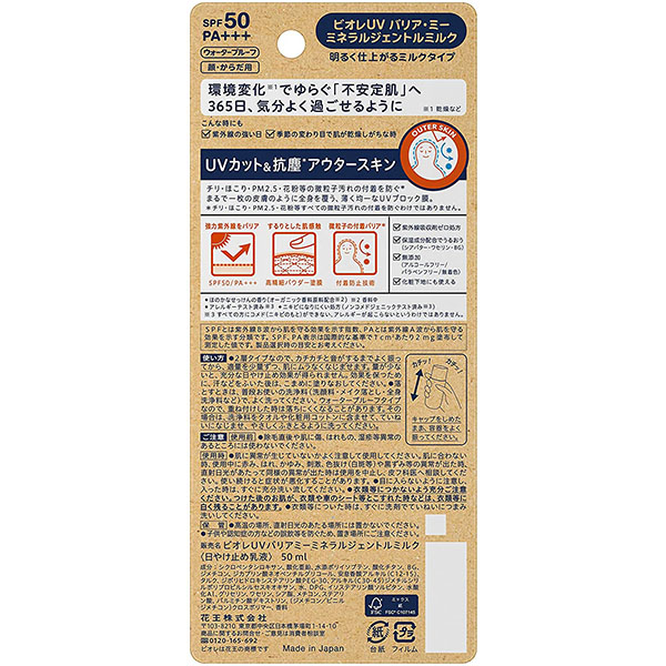 Biore UV Barrier Me Mineral Gentle Milk 50ml SPF50 / PA +++ Sunscreen