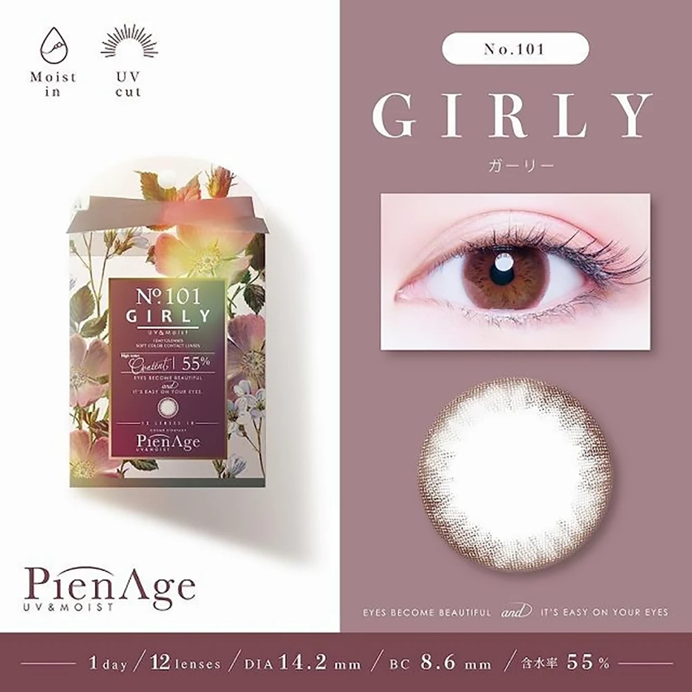PienAge 1day Color No.101-108 12pcs 洋娃娃风格轻混血日抛 12片 非离子材料/低含水率防眼干