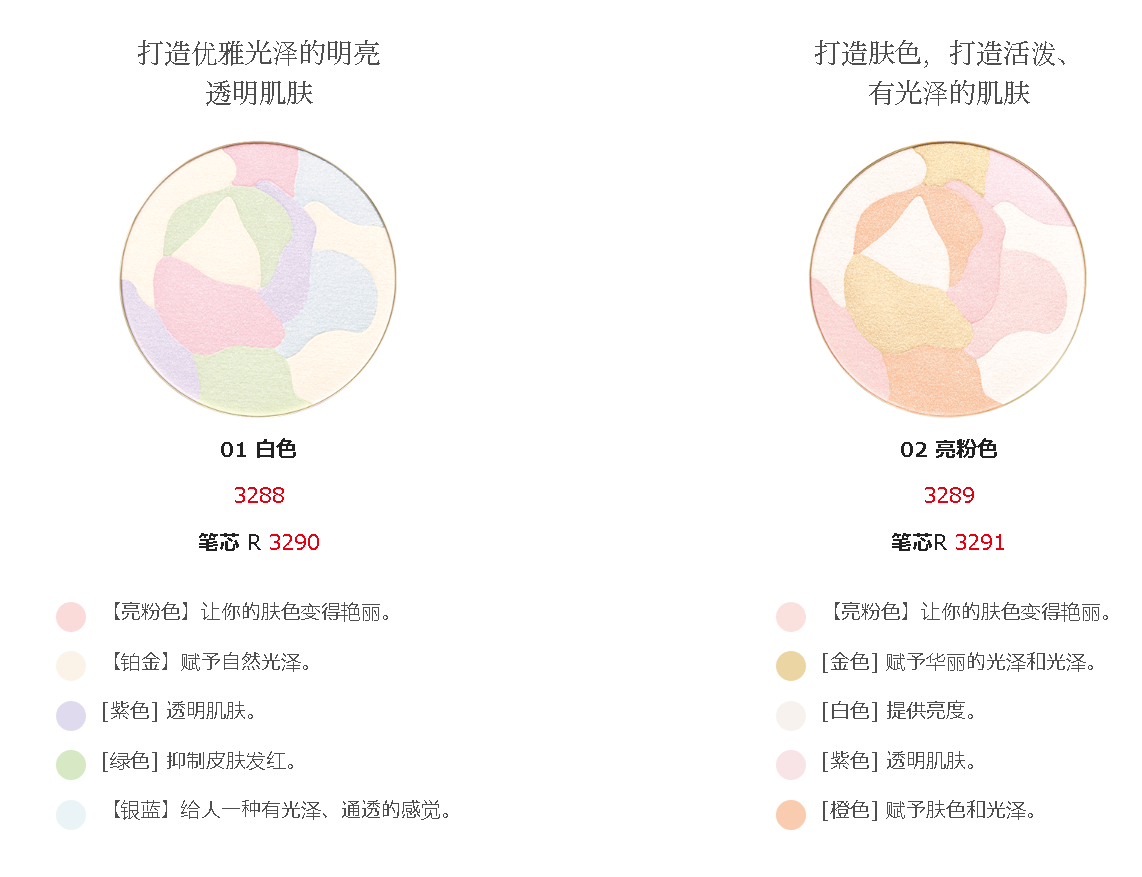 - 控光珍珠*6:三色珍珠遮盖暗沉,打造自然亮泽。