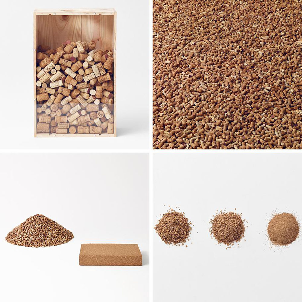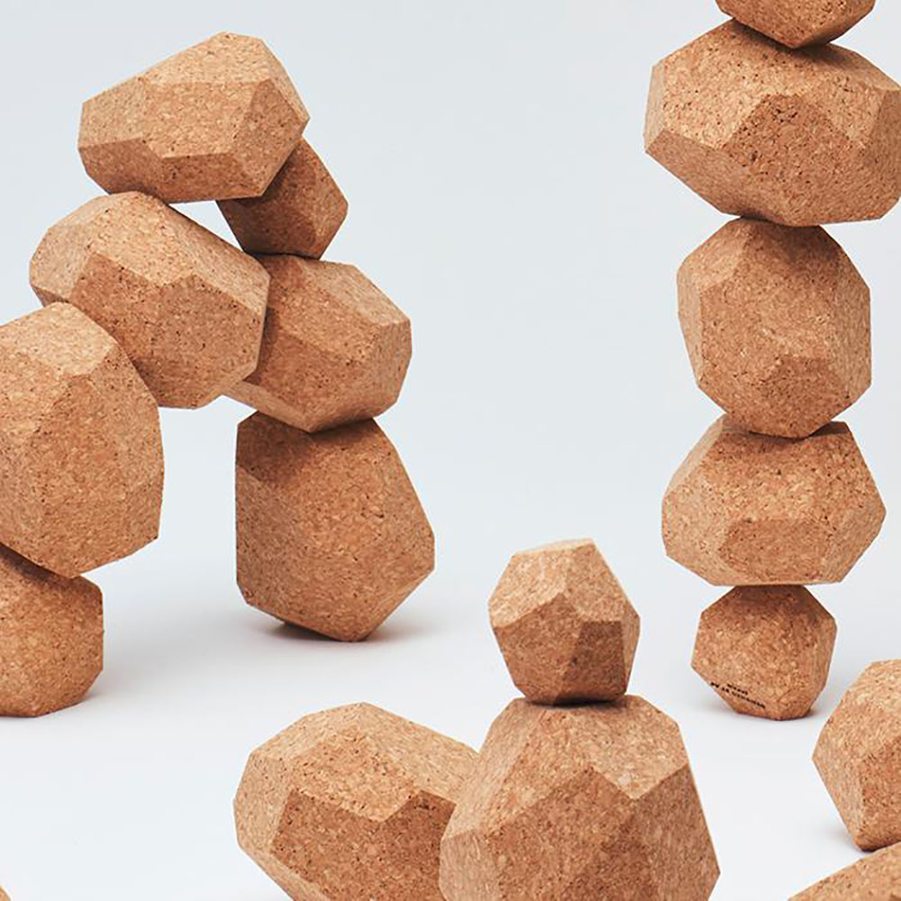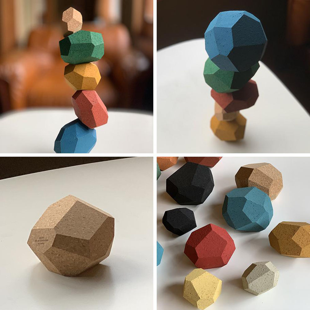 它们由东京回收的酒塞软木塞制成,每一块都由日本奈良当地工匠手工斜切成几何不对称形状。