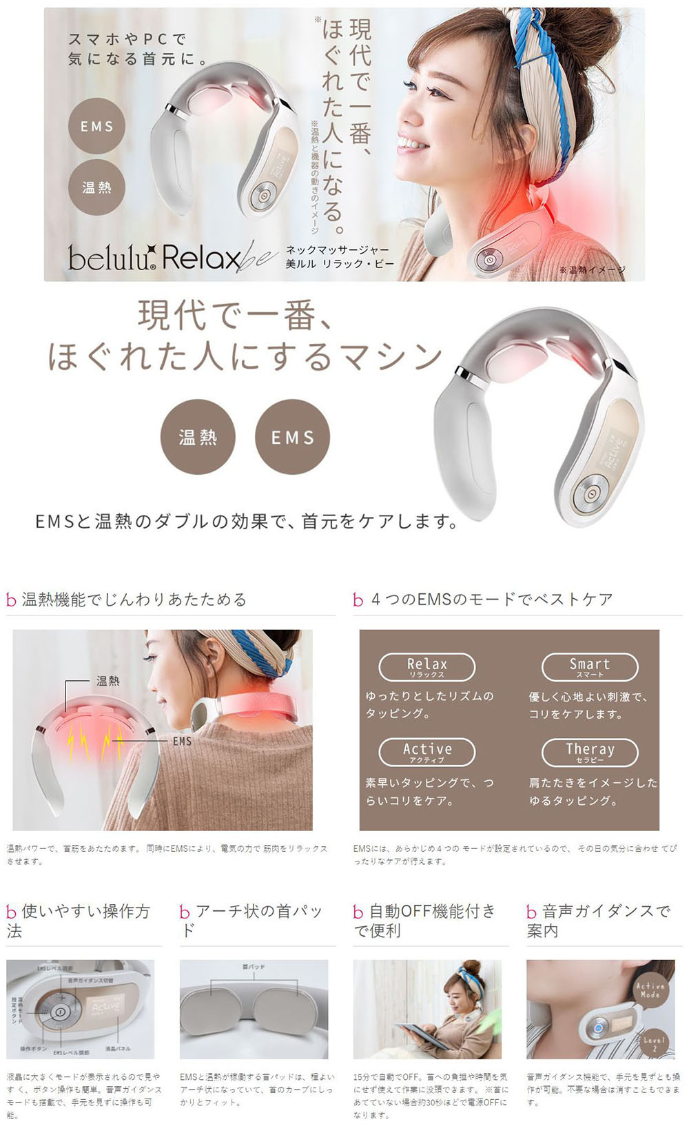 belulu Relax-be Belulu颈椎按摩器EMS+加热 模拟人手按摩