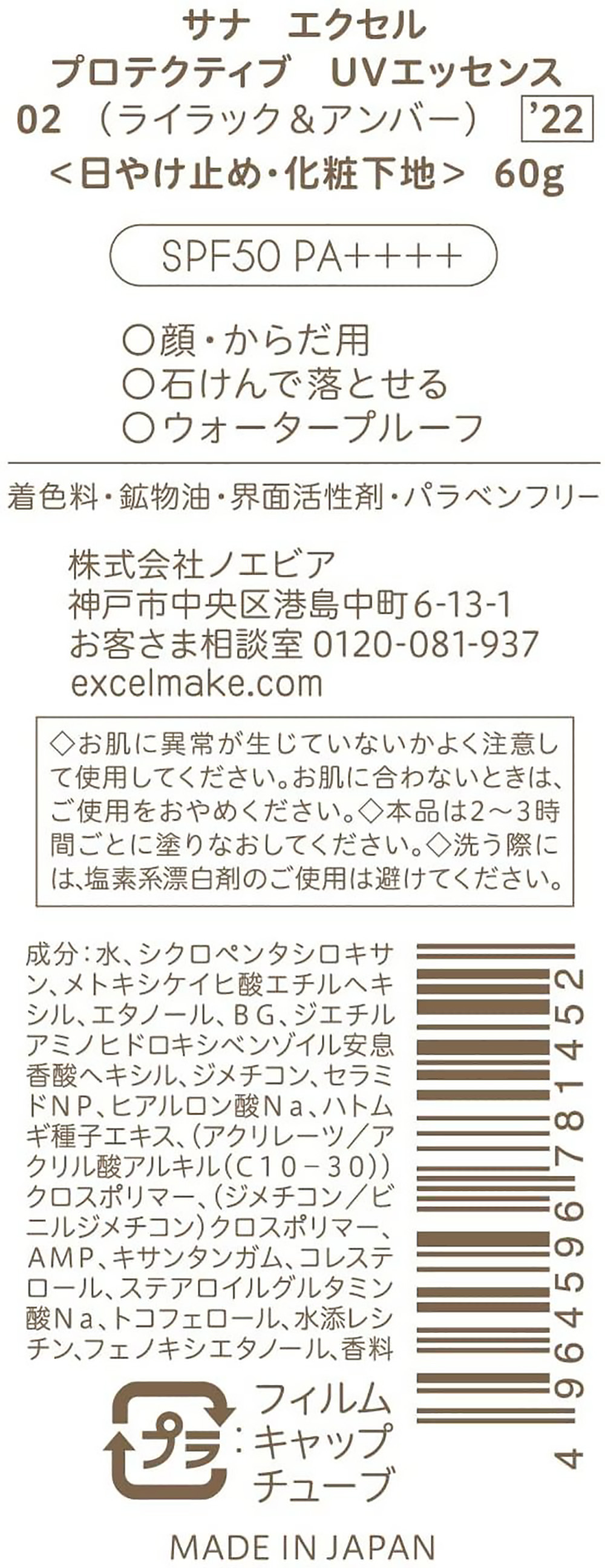 Home / Skin Care护肤 / Sunscreen防晒 / excel Protective UV Essence 02 ’22 (Lilac & Amber) 60g excel Protective UV Essence 02 ’22 (Lilac & Amber) 60gJPY¥1,892.00 Sunscreen Product is available through backorders from Japan, estimated delivery dates: 10-20days. 该产品为代购产品/非现货,代购周期为10-20天。 excel Protective UV Essence 02 '22 (Lilac & Amber) 60g quantity Add to cart Description Additional information Description Additional information Weight 150 g Related products Quick viewShiseido Vital Perfection UL Firming Cream Enriched 50g JPY¥15,001.00 Add to cart Quick viewShiseido Vital Perfection UL Firming Cream 50g JPY¥15,001.00 Add to cart Quick viewAllie Extra UV Highlight Gel JPY¥6,060.00 Add to cart Quick viewTunemakers Fullerene Essence 10ml JPY¥4,059.00 Add to cart