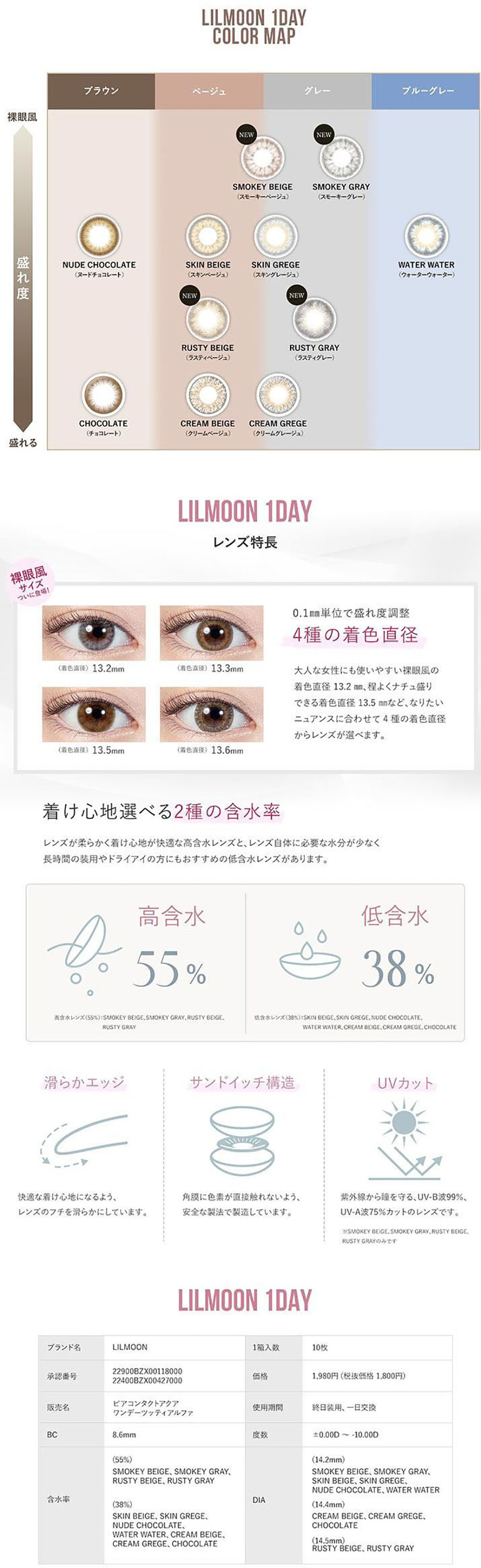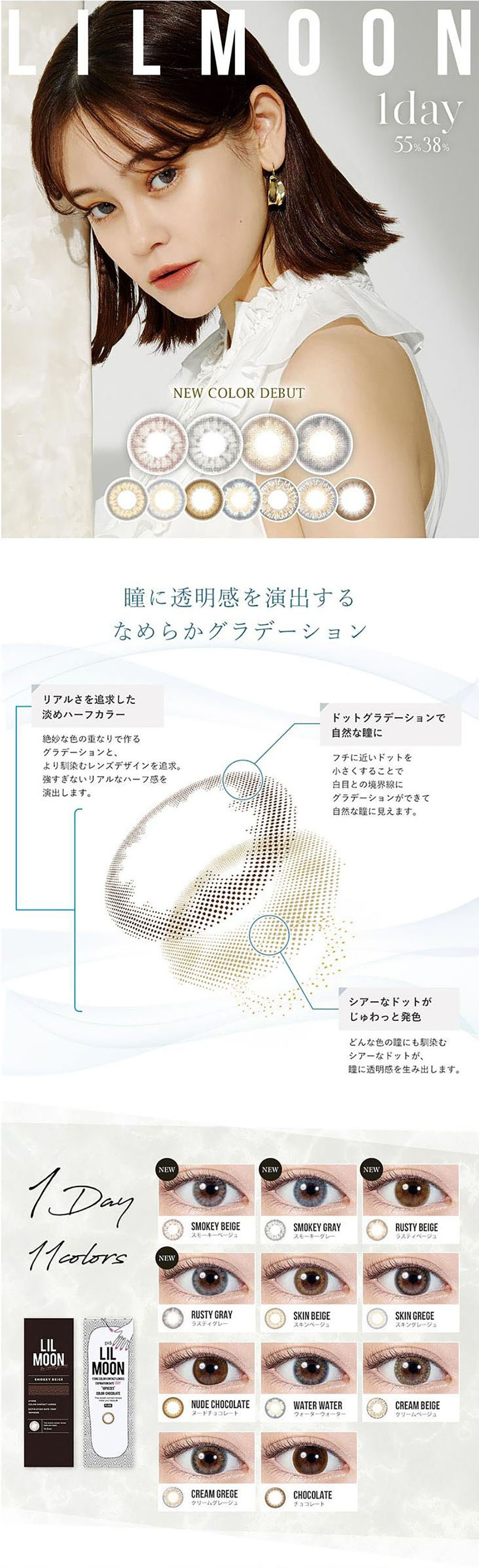 Lil Moon 1day 10pcs Lil Moon日抛美瞳10片装 7色入混血糖果风格 非离子材料/低含水量 低含水率防止 眼干