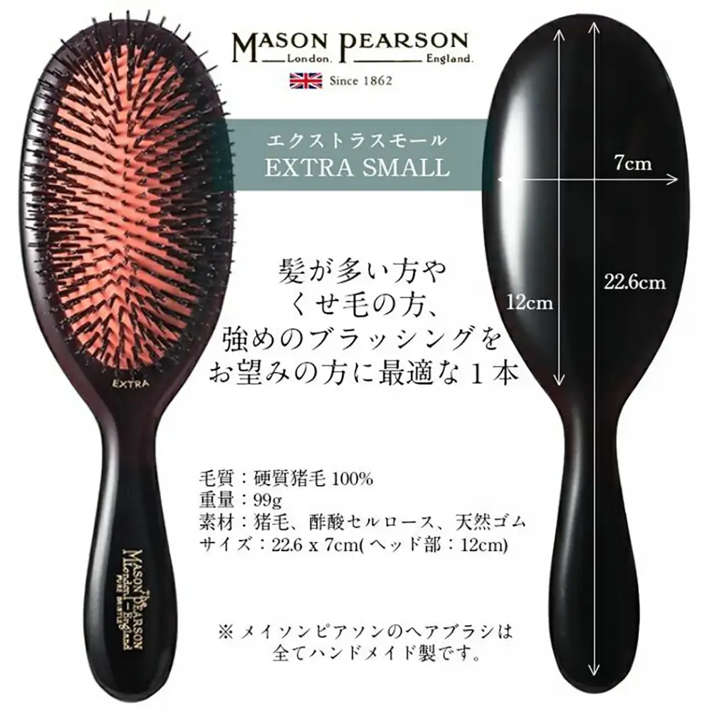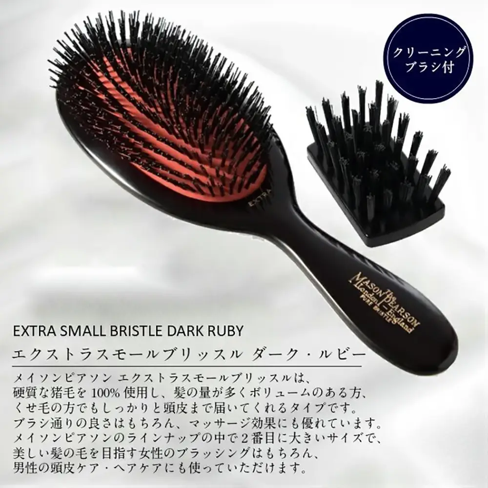 Mason Pearson Hair Brush Extra Small Bristle Dark Ruby with Cleaning Brush