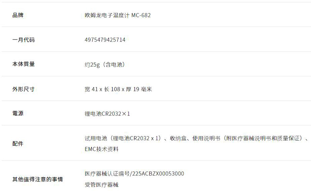 Home / Uncategorized / Omron Electronic Thermometer MC-682 Omron Electronic Thermometer MC-682JPY¥2,841.00 For Baby Product is available through backorders from Japan, estimated delivery dates: 10-20days. 该产品为代购产品/非现货,代购周期为10-20天。 Omron Electronic Thermometer MC-682 quantity Add to cart Description Additional information Description Additional information Weight 100 g Related products Quick viewAnpanman Shower Anywhere 面包超人小花洒玩具 面包超人玩具 JPY¥2,429.00 Add to cart Quick viewMama & Kids (Mama and Kids) Sunscreen Milk 90ml SPF30/PA+++ JPY¥3,345.00 Add to cart Quick viewSonrisa Baby Rope and alcohol gel holder JPY¥3,007.00 Select options Quick viewMama & Kids (Mama and Kids) Baby Skin Care Gift Set JPY¥7,731.00 Add to cart