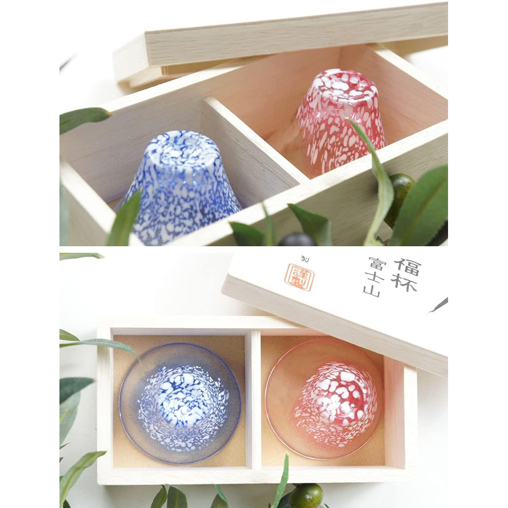 Toyo Sasaki Glass, Pair of Cold Sake Glasses, Fuji Fuji, Cold Sake Cup Alignment, Made in Japan, Blue & Red, 35ml, 2 Pieces, G635-T72