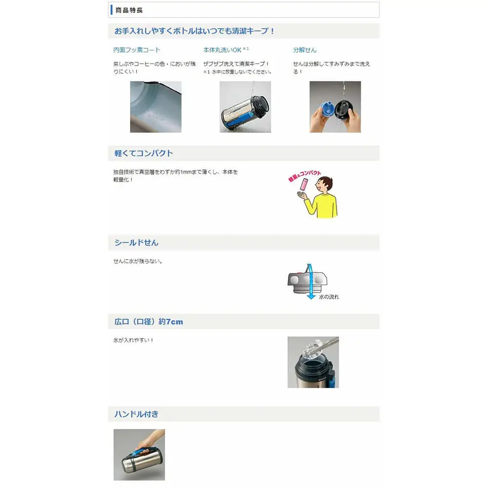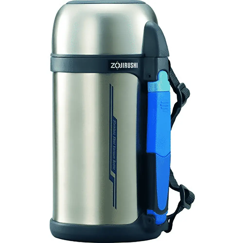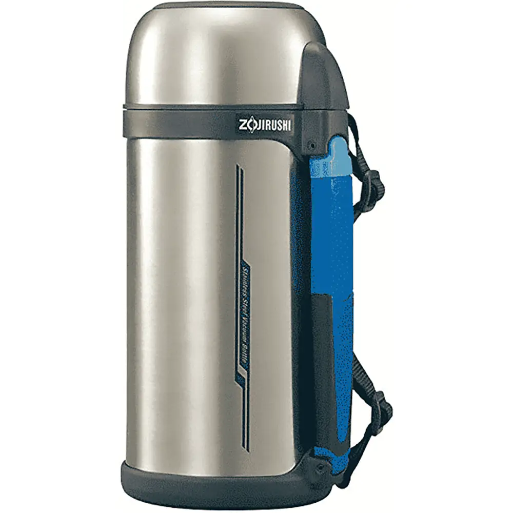 Zojirushi began in Japan in 1918 as a manufacturer of hand-blown vacuum bottles. They are still known today for their high quality vacuum insulated products. The superior thermal insulation in this bottle will keep your beverage hot or cold for hours. This 44-ounce/1.3-liter tuff sports stainless steel vacuum bottle has a nonstick interior coating for easy cleaning. Each bottle comes with a removable cup lid, and bonus cup. The fold down handle, disassembled stopper, and removable shoulder strap make traveling easy. Perfect for your next trip or sports event.